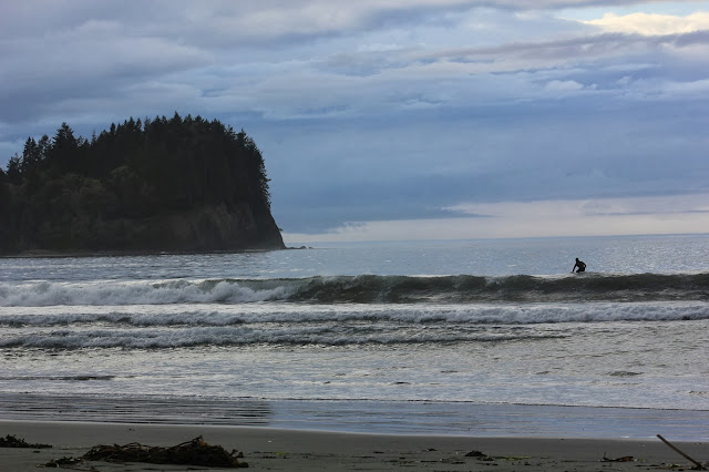 It's roughly 325 miles from Pacific City to Port Angeles. The drive up Highway 101 can be incredible... after Olympia. We didn't waste any time along the way, though. Stopping once for coffee and again for fuel. Blazing a trail, if you will. It was five minutes after five when we walked across the street and into the ocean. Two of our friends had been there since early that afternoon and said it had been small, but surfable. As luck would have it, however, the waves were waist high when we arrived. Straight Flush! Karissa and I surfed until the sun went down, sharing waves and taking turns shooting a few photos. As the tide filled in, the swell began to die down a bit. We showered and then headed to Angel's house for our first fall feast of the year. And while I can't speak for the conditions on the coast, I can say that the two hours we spent surfing that evening were worth all the extra effort.
